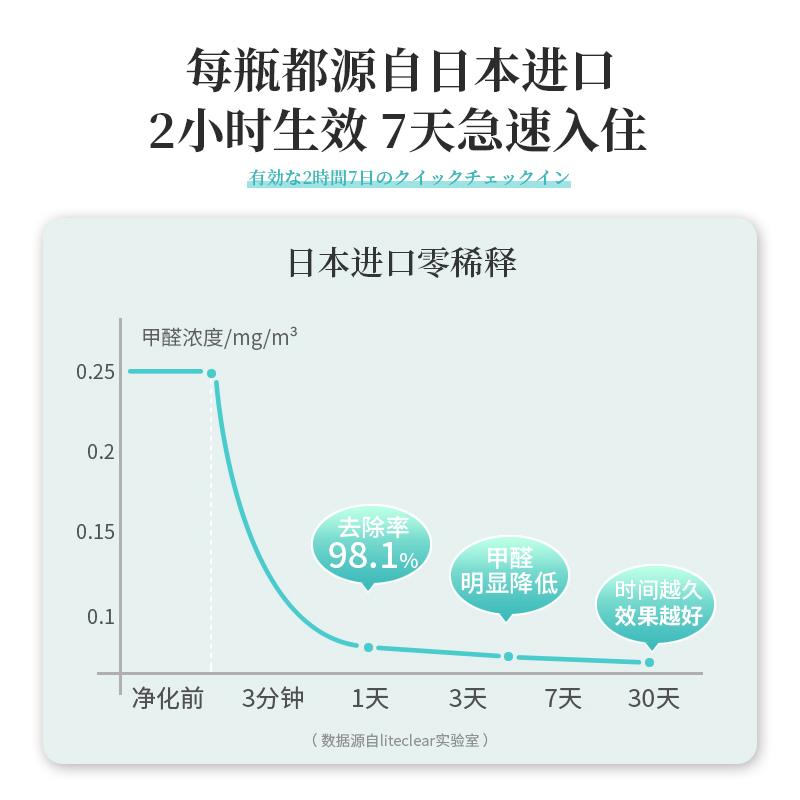 日本进口除甲醛神器光触媒快速去除油漆味新房除TVOC除苯除氨 3瓶