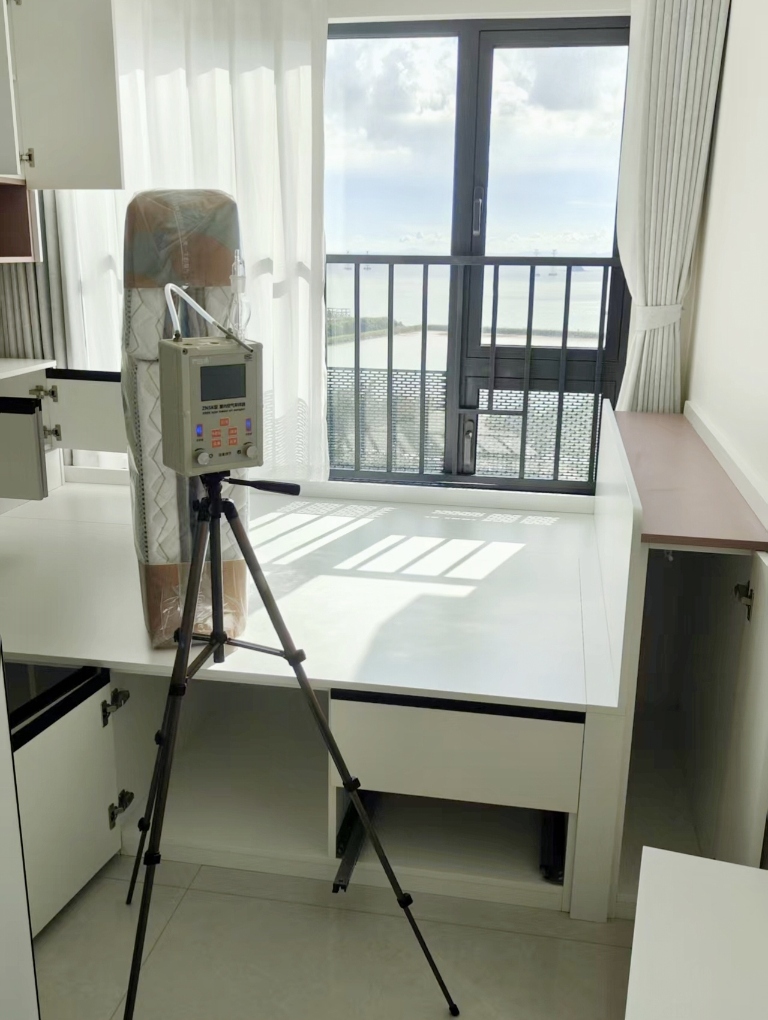 1.初步检测。工程师在客厅、主卧、儿童房一、儿童房二进行初检,架好测试机器,检测用时20分钟。