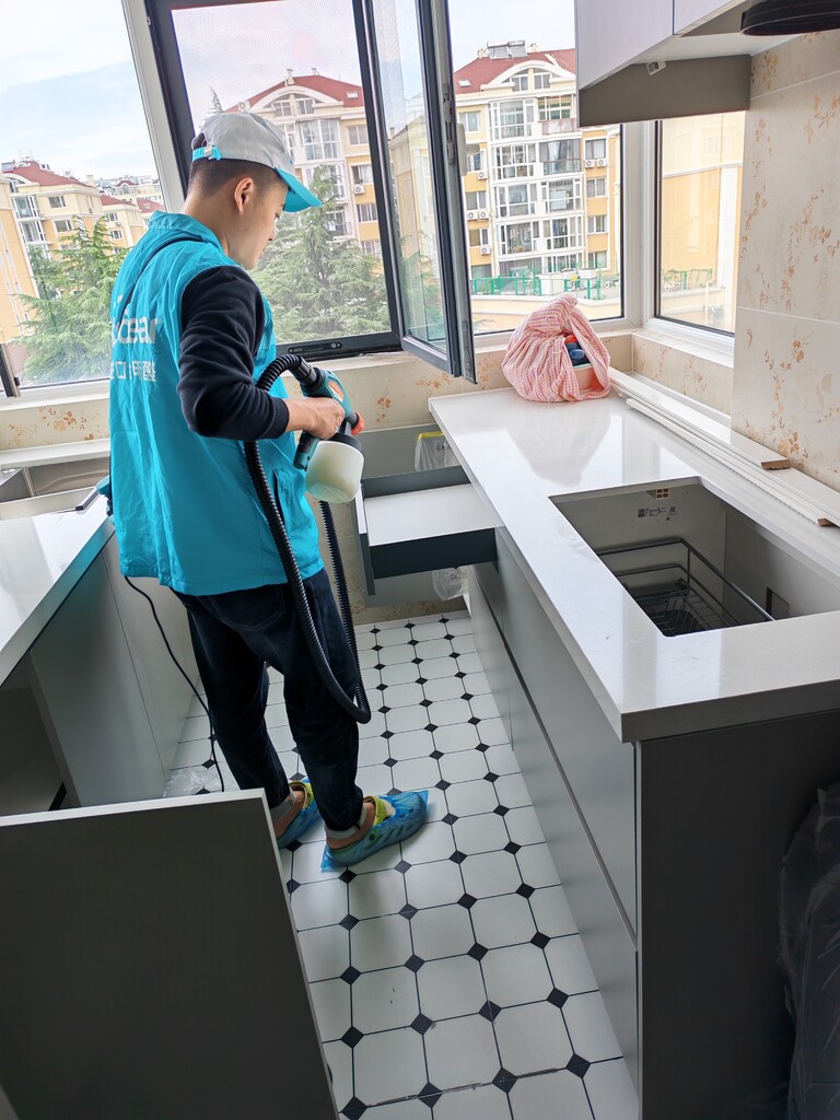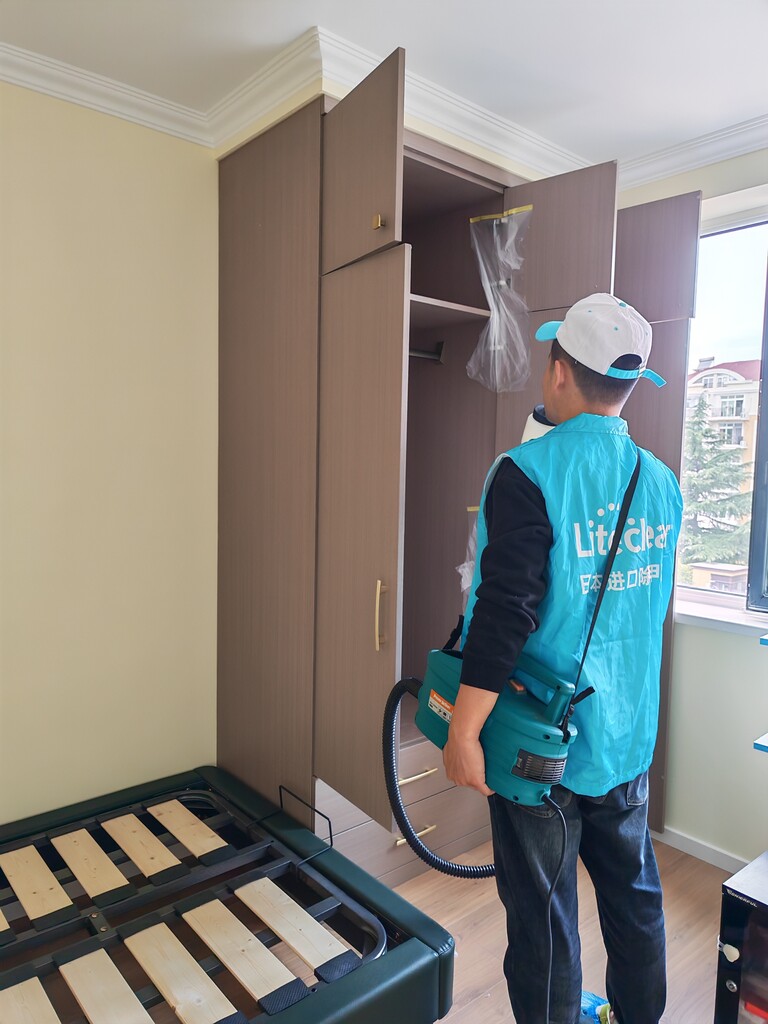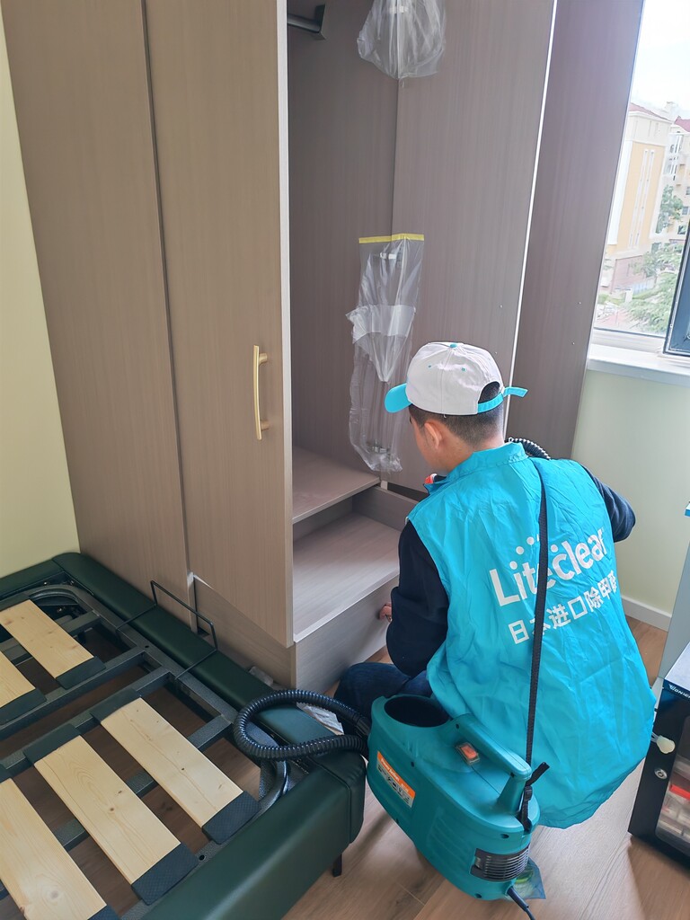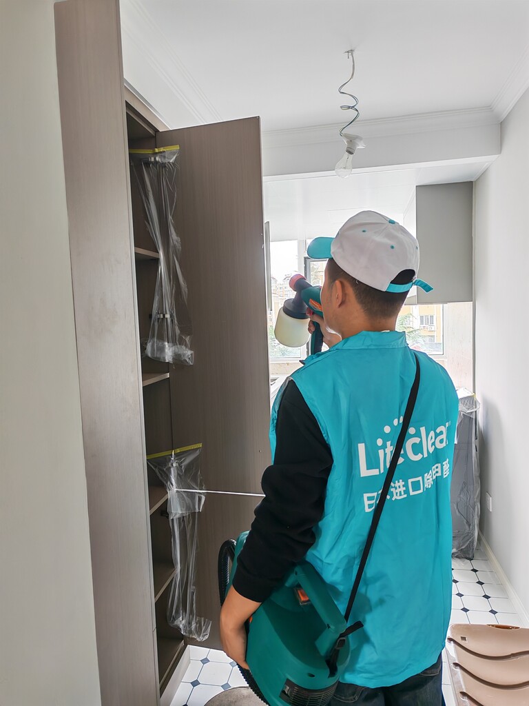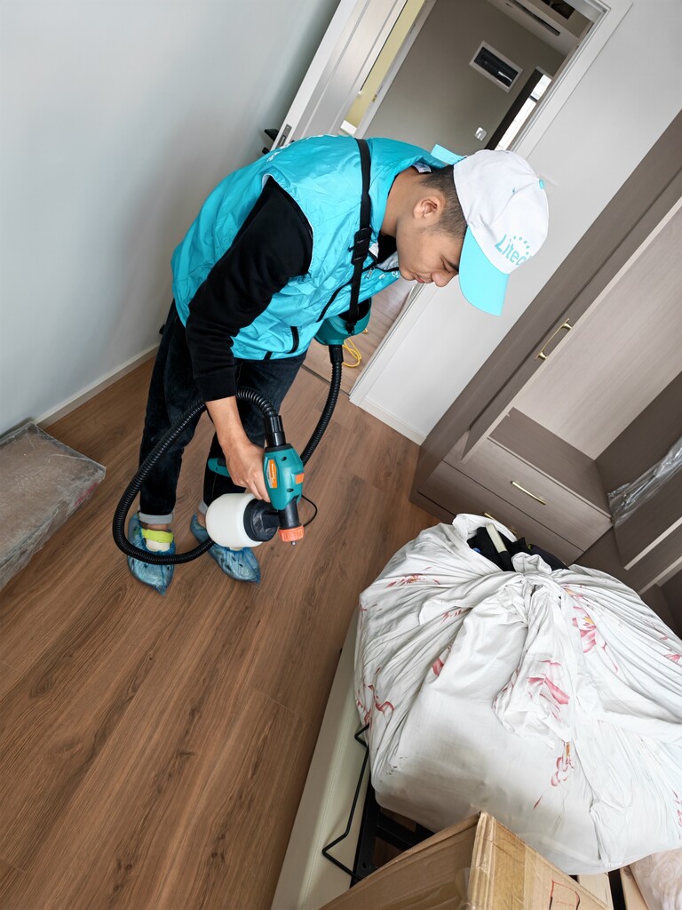 3.正式治理。工程师架好雾化机器,戴好面具、鞋套,倒入溶液,开始分区精细化治理。墙壁、窗帘、桌子、沙发、柜子、床垫等全部细致地喷涂我们的溶液。️全部细致地喷涂我们