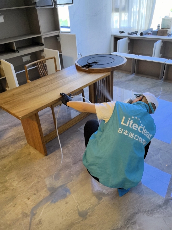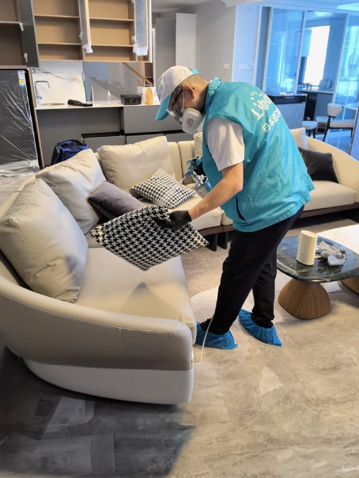 3.正式治理。采用雾化设备,施工人员规范操作,对沙发、柜子、墙面、地板等全面喷涂治理。