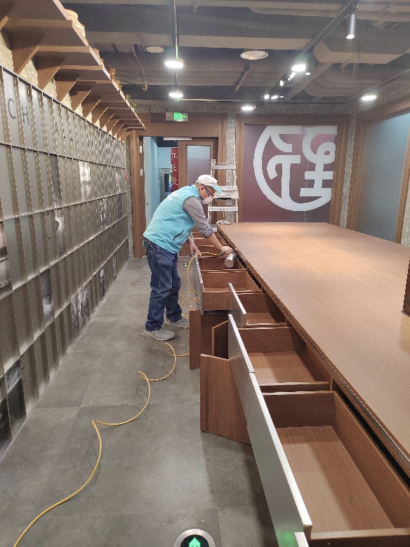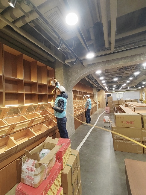 3.正式治理。采用雾化设备,施工人员规范操作,对墙面、柜体、地板等全面喷涂治理。