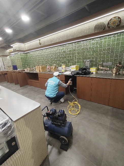 1.初步检测。工程师在厨房、仓库、店面等进行多点检测,精准掌握污染情况,检测用时20分钟。