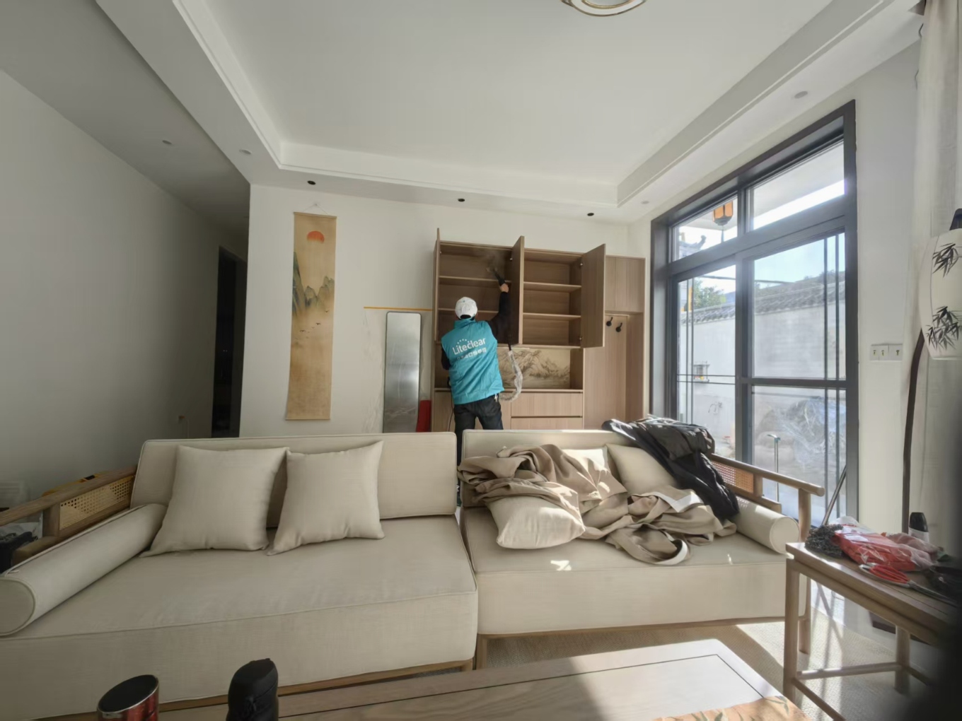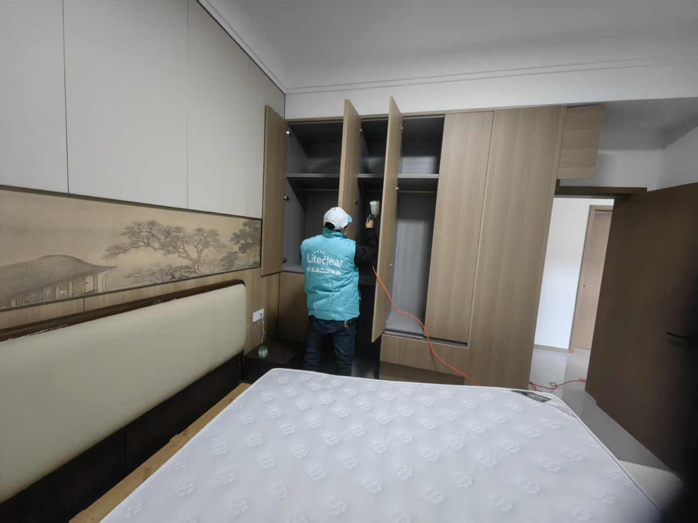 3.正式治理。采用雾化设备,施工人员规范操作,对墙面、柜体、地板等全面喷涂治理。