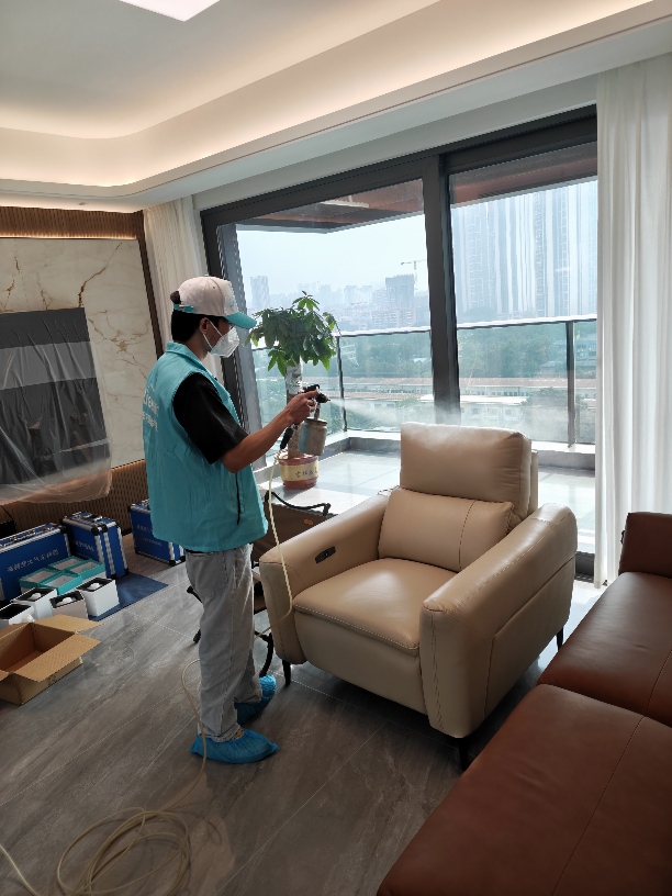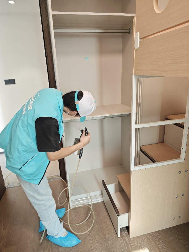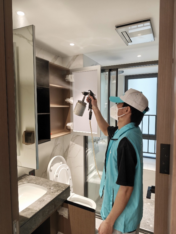 3.正式治理。采用雾化设备,施工人员规范操作,对墙面、柜体、地板等全面喷涂治理。